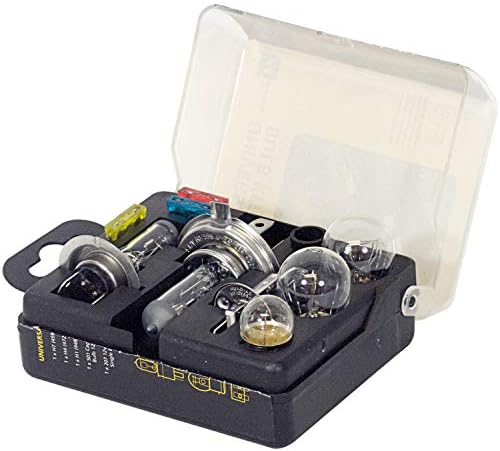 Contains the 3 main types of Halogen Headlamp BulbsContains a selection of other essential bulbsAlso contains 3 blade fusesAll contained in a sturdy storage box