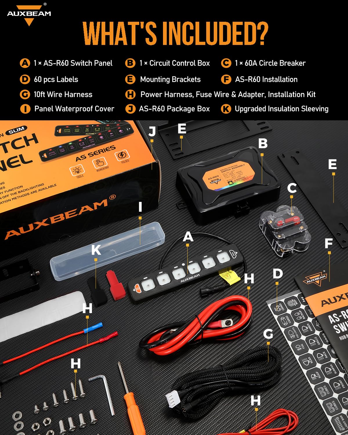 Upgraded Accessories: The upgraded accessories include a circuit box with a built-in solid-state relay, a 60A high-quality resettable circuit breaker, fuses, 60pcs stickers, mounting brackets, a 10ft wiring harness. It also comes with a dust cover to keep it clean and dust-free.